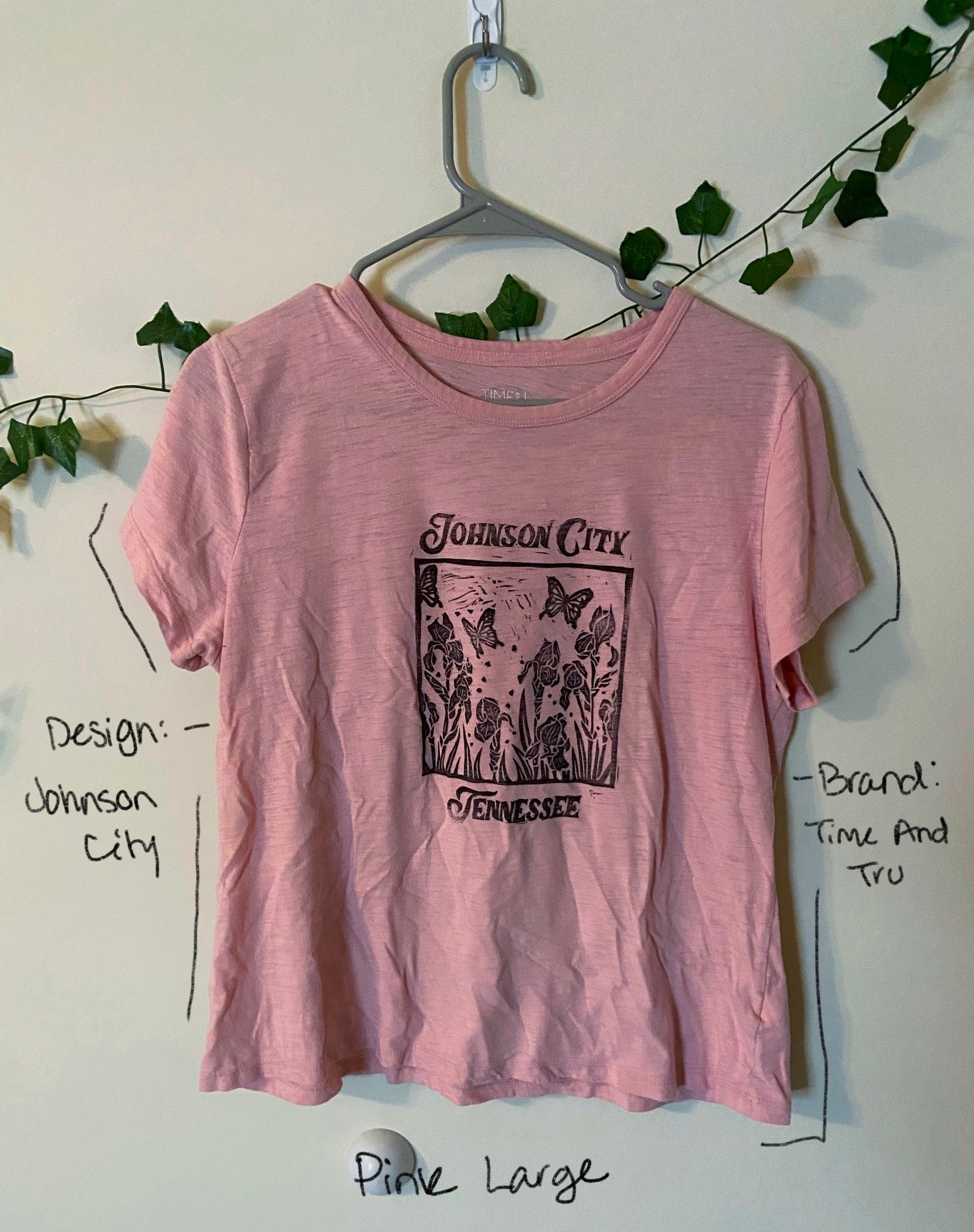 My lino cut block designs on thrifted clothing! These are all hand printed and small mistakes are common and add to the design. If I don’t have your size or a color you want, then please message me and I’ll try to accommodate what you’re looking for. All designs have been heat set and washed after printing.